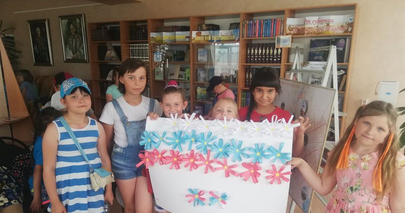 13 июня для воспитанников коррекционной школы-интернат №6, а 14 июня для ребят летней оздоровительной площадки МБОУ «СОШ №7» библиотекарь юношеского абонемента провела исторический калейдоскоп «Знаменем и силой прославим Россию», посвященный Дню России. Библиотекарь рассказала историю возникновения этого праздника и как Россия получила свое имя. Ребята с большим интересом играли в игру «Подскажи словечко», дружно отгадывали загадки и др.В завершении ребята клеили из заготовок, нарезанных бумажных полосок, цветочки разных цветов (голубой, красный, белый) и наклеивали цветочки на ватман, тем самым делая флаг России.
